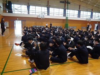 生徒のコメント:先輩の勉強法や受験期の過ごし方を知ることで、数年後をイメージすることができました。実際の大学生活の様子をモチベーションに、これからの大安寺生活を頑張ります。