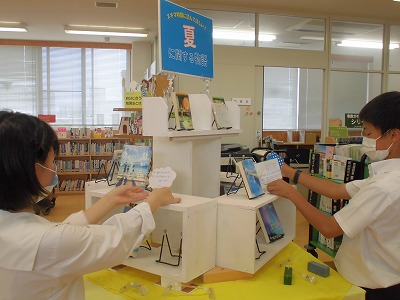 今の季節にピッタリな気分が涼しくなる本と「これを片手にゆっくりしてほしい!」という願いを込めた本を展示しています!一度手にとってみて下さい。