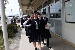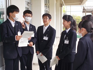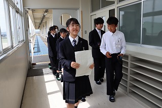 4月14日(月)の4校時に新入生オリエンテーションの1つとして、校内案内がありました。2年生が案内役になり、1年生が早く学校生活になれるために、校内のルールや施設の場所などの説明をしながら校内を案内しました。昨年の自分たちを思い出して、優しく声かけをしている2年生は頼もしく見えました。また、1年生にとっても、先輩とのおしゃべりが楽しく、あっという間に過ぎました。
