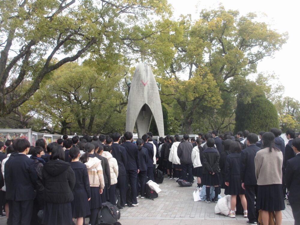 2月6日(金)、15期生が広島市において平和学習を行いました。当日は岡山駅、新倉敷駅に分かれて新幹線に乗り、平和記念公園にて全員集合となりました。原爆ドーム前で集合写真を撮影した後は、原爆の子の像の前で平和集会を行い、各クラスの平和宣言を発表しました。その後、広島平和記念資料館に行き、時間いっぱい真剣に見学することができました。見学後は班別研修を行い、各班で昼食をとったり、各施設をまわったりして、戦争の悲惨さや原爆の恐ろしさを深く学びました。今回の研修を通して、平和の重要性を次の世代に伝えていくことが、私たちの使命だと感じることができました。