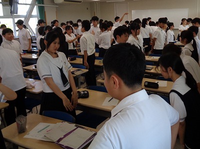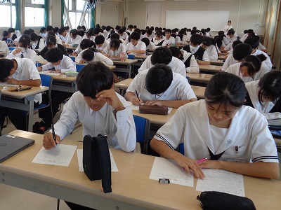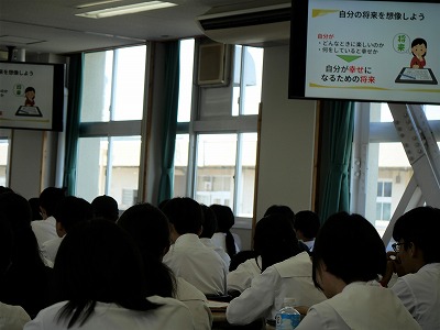 岡山県社会保険労務士会から北根由加里先生をお迎えして、言葉遣いやお辞儀の違いなど、社会人としてのマナーについてだけではなく、働く意義などについても教えていただきました。会の最後には生徒からの質問も多くあり、とても充実した講演でした。学んだことをチャレンジワークだけでなく、これからの生活で役立てていきましょう。