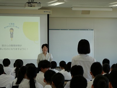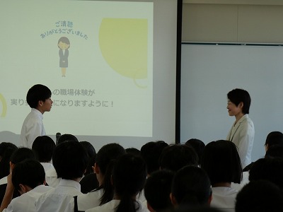 10月6日(月)7時間目に2年生が、10月28日から3日間の予定で行われるチャレンジワークに向けた準備として、「マナー講座」を受講しました。
