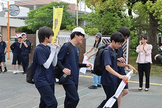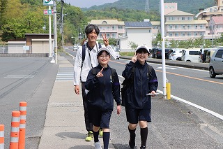 4月28日(火)、2年生は長距離ウォーク(総社駅から学校までの25km)を行いました。天気に恵まれ、お互いに話をしながら楽しい一日となりました。普段慣れていない距離を歩いて、足が痛く感じた生徒もたくさんいましたが、参加した全員があきらめず、無事完歩することができました。多くの保護者の方にボランティアで参加・応援して頂き、生徒も喜んでいました。ご多忙のところ、ありがとうございました。今回の長距離ウォークを通して、忍耐力がついたと思います。これからの生活に活かしてくれることを願っています。