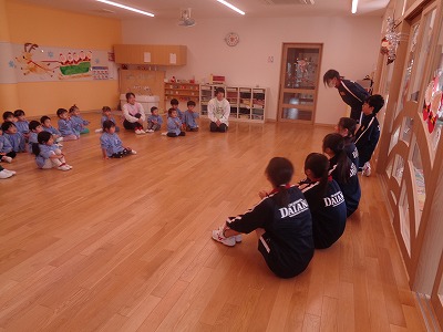12月6日(水)にB組、11日(月)にC組が宝島保育園で保育実習を行いました。夏休みから計画し、制作したおもちゃを持参すると、園児のみなさんは喜んで遊んでくれ、3年生の表情が徐々に柔らかくなっていくのが印象的でした。園児のみなさんからパワーをいただき、保育士の先生方には温かく見守っていただきながら大変貴重な時間を過ごすことができました。自分たちも多くの方に見守られ、支えられながら成長してきたことを実感するよい機会となりました。
