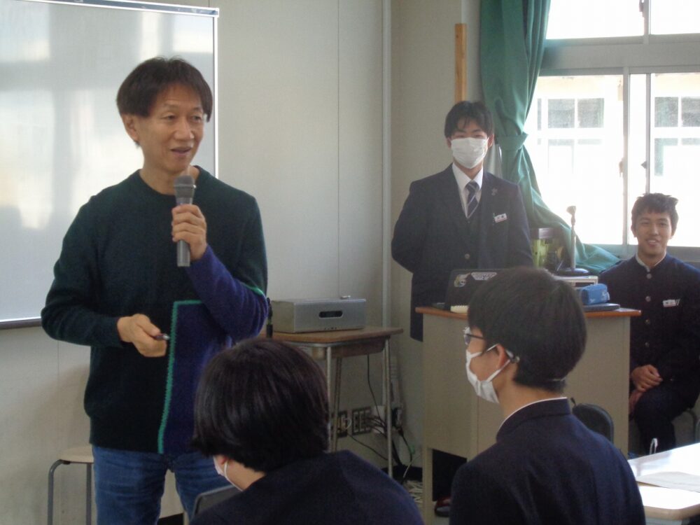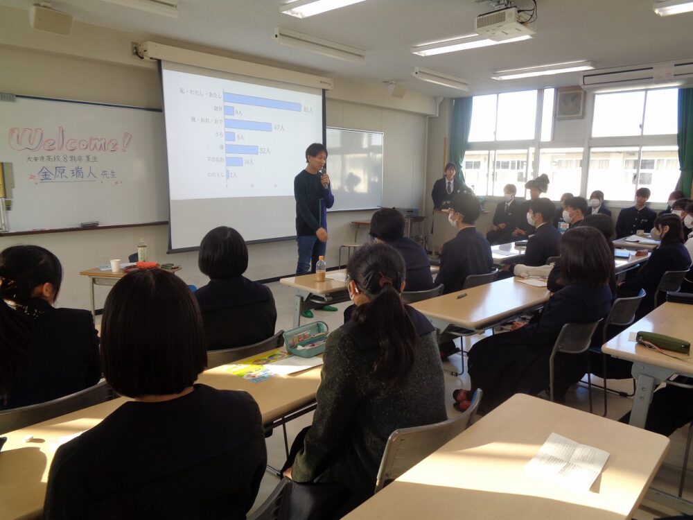 11月21日(金)7限LHRの時間に、「5年生による金原瑞人先生を囲む会」を、多目的教室にて開催しました。 著名な翻訳家である金原先生は、岡山大安寺高等学校8期卒業生です。この会の企画・運営は、生徒の手により行いました。